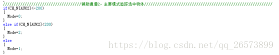 哦忘了第五步了模式切换,通过六通道,也就是辅助2通道的阈值来进行模式切换。找到你的飞控程序的遥控接收部分,设置一下Mode的值吧