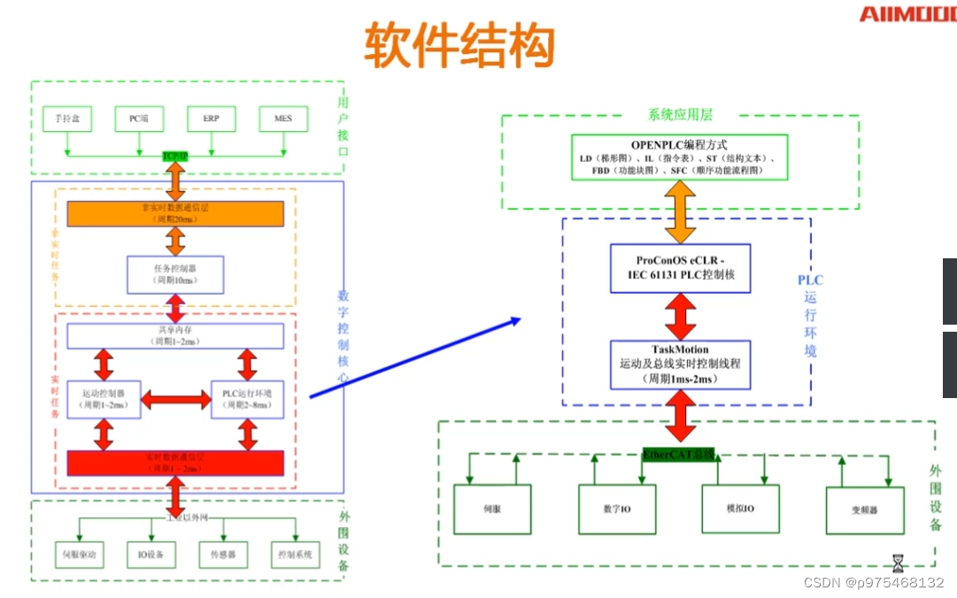前两部分属于可编程逻辑控制模块的程序编辑和编译,一般在用户接口处实现,后一部分属于程序运行环境,对于实时性有一定的要求,一般与数字核心控制模块的运动控制部分实现在一起