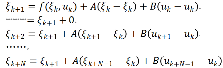 x(:,i+1) == A*(x(:,i)-kesi(1:3)) + B*(u(:,i)-kesi(4:5))+state_k1;%非线性