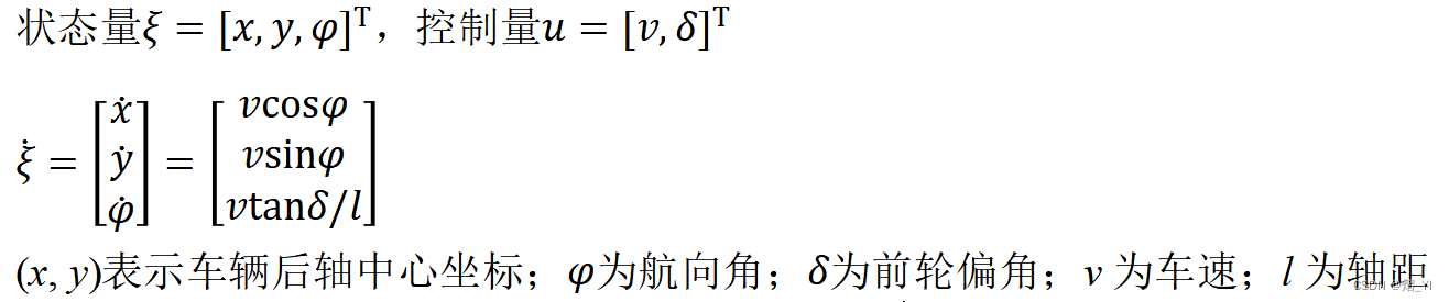 %x:横坐标;y:纵坐标;phi:航向角;delta:前轮偏角;