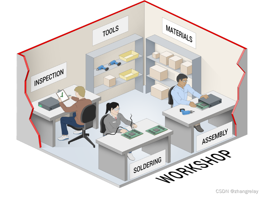 多核 CPU 可以理解为工厂中的一组车间,每个车间都雇佣了非常熟练的工人。这些工人每个人都可以使用通用工具,让他们几乎可以构建任何东西。每个工人一次制作一件物品,依次使用不同的工具将原材料变成成品。车间大多是(不考虑缓存)独立的,工人都可以做不同的任务而不会分心或协调问题。