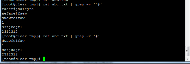 cat abc.txt | grep -v '#' 不显示有#号的行!