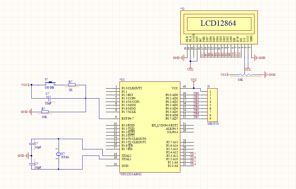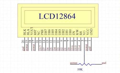 LCD12864液晶显示模块能显示中文汉字、数字、字符,能显示数字与字符的个数为64个(4行,每行16个数字或字符),能显示汉字的个数为32个(4行,每行8个汉字)。其内置了8192个中文汉字(16*16的点阵)、128个字符(8*16点阵)、以及 64*256 点阵显示 RAM(GDRAM)。