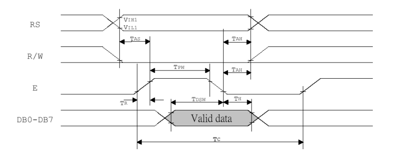 /*写入数据到LCD12864,令RS=H,RW=L,EN=高脉冲,D0-D7=指令码。*/