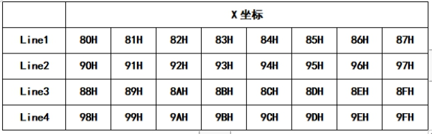 lcd_pos(0,0); //设置显示位置为第一行的第一个字符