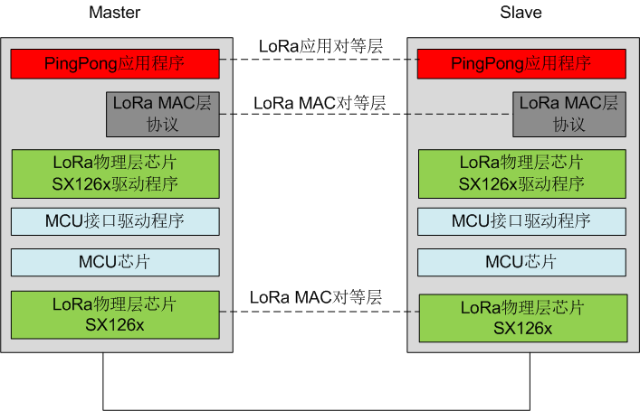 两个LoRa节点直接利用的是LoRa芯片提供的物理层的功能。ping和pong消息是直接承载在LoRa的物理成的帧结构中。