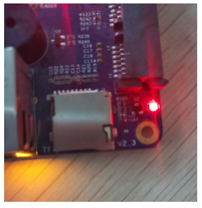 接收端的开发板的 led 灯也变亮了, 如下图所示: