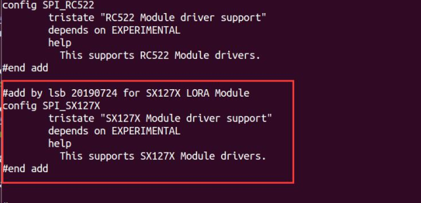 选择“SX127X Module driver support” , 取消选择“RC522 Module driver support” 。 如下图所示。