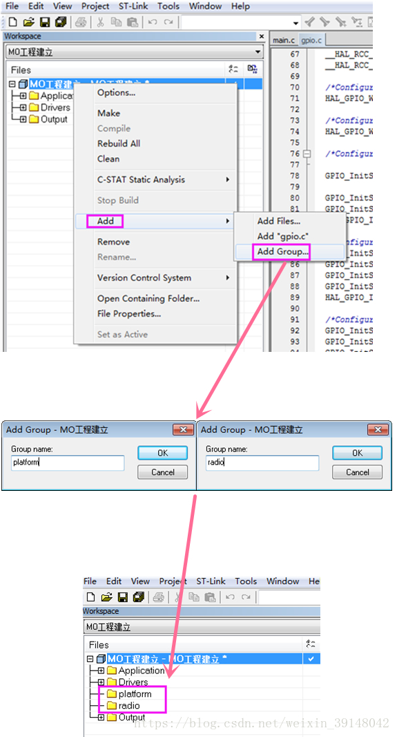 IAR工程中添加工作组