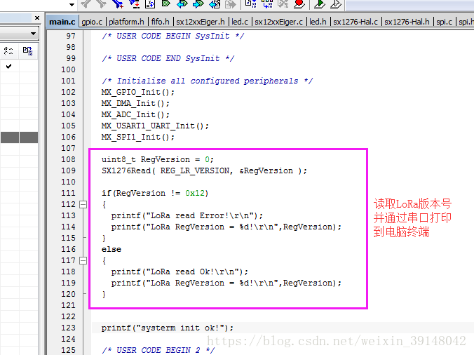 LoRa模块上电自检:如果能读取LoRa芯片的版本号,则SPI功能正确,驱动移植成功