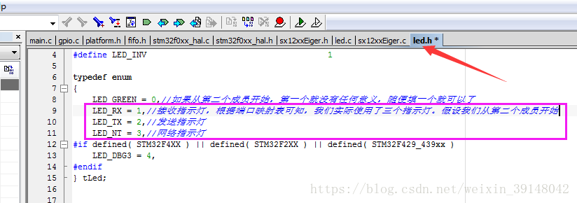 LED_RX = 1,//接收指示灯,根据端口映射表可知,我们实际使用了三个指示灯。假设我们从第二个成员开始