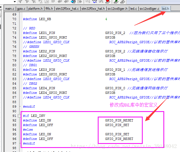 修改led.h中IO口定义(根据IO功能映射表)