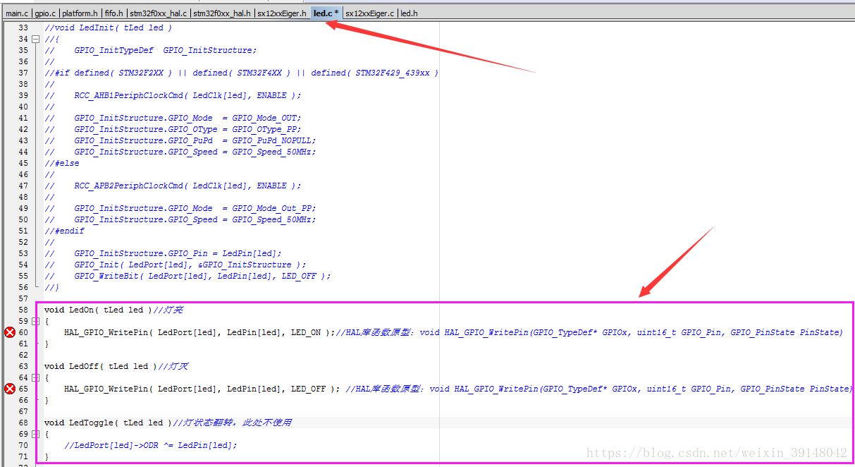 HAL_GPIO_WritePin( LedPort[led], LedPin[led], LED_ON );//HAL库函数原型:void HAL_GPIO_WritePin(GPIO_TypeDef* GPIOx, uint16_t GPIO_Pin, GPIO_PinState PinState)