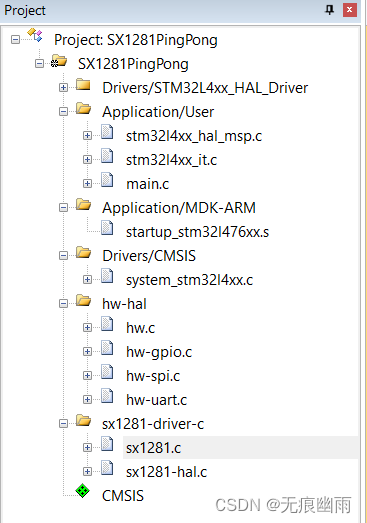 下载SX1281DemoCodeDriver-C.zip固件包,解压缩后,打开工程,环境如下: