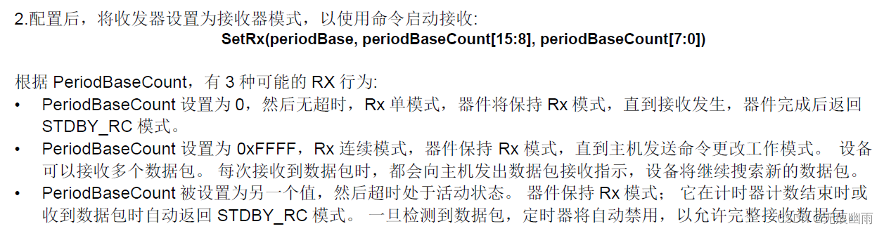 以上就是俊逸楼房最近收集整理的关于SX1281驱动学习笔记一:Lora驱动移植一、资料下载1、中文手册下载地址:2、英文手册下载地址: 3、固件下载地址:4、SX1281的速率计算器下载地址:5、SX128X区别:二、驱动讲解1、radio.h文件 2、sx1281.c文件3、sx1281-hal.c文件4、main.c文件三、问题汇总1、接收数据长度问题的全部内容,更多相关SX1281驱动学习笔记一:Lora驱动移植一、资料下载1、中文手册下载地址:2、英文手册下载地址: 3、固件下载地址:4、SX1281内容请搜索靠谱客的其他文章。