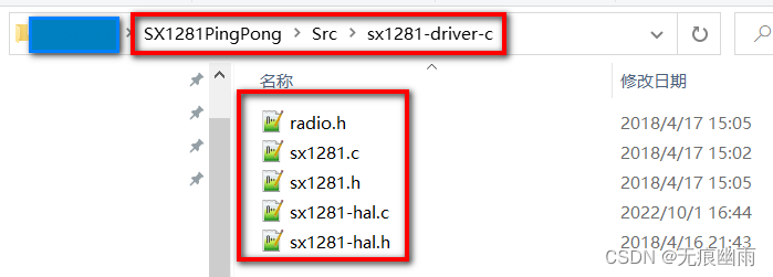 和SX1281相关文件如下图所示,一共5个文件: