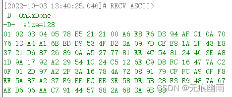 注意:经过测试,在显示包头格式下,PacketParams.Params.LoRa.PayloadLength参数不影响接收数据长度,也就是说这个参数设置多少无所谓,接收数据根据实际发送字长接收;隐士包头格式未测试。