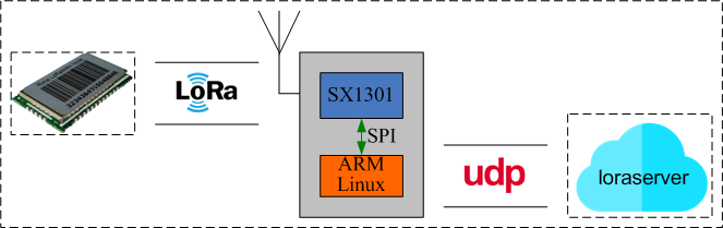 它的硬件构成是 2 部分:SX1301 收发 LoRa,ARM+Linux 负责驱动和协议转换。