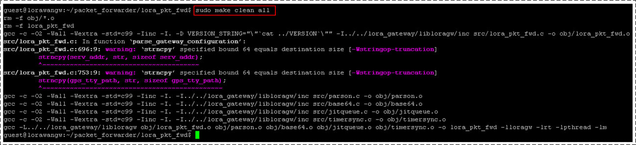 如果修改了 SX1301 驱动代码,这需要优先编译,因为 LoRa 转 UDP 代码依赖它。