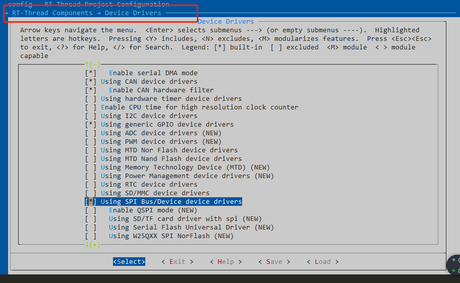 2.2 输入menuconfig命令,进入配置窗口,使能SPI驱动