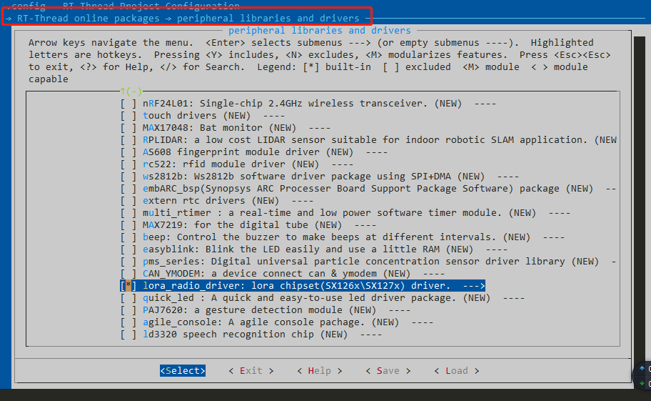 在外设驱动库中,选择启动LoRa软件驱动包,然后进入配置