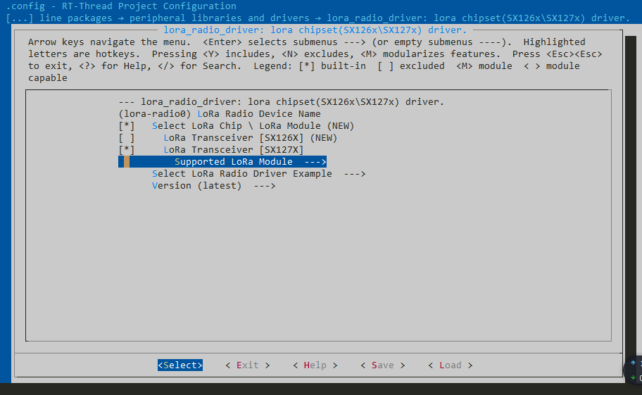 LoRa芯片选择sx127x,然后点击Support LoRa Module,选择具体的芯片