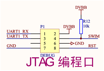 DEMO产品的调试口有8针,只需要4针:DVBB、SWIM、GND和RST分别与ST LINK仿真对应针相连。同时,仿真器可以给DEMO板供电,很方便调试,实物连接图如上所示。