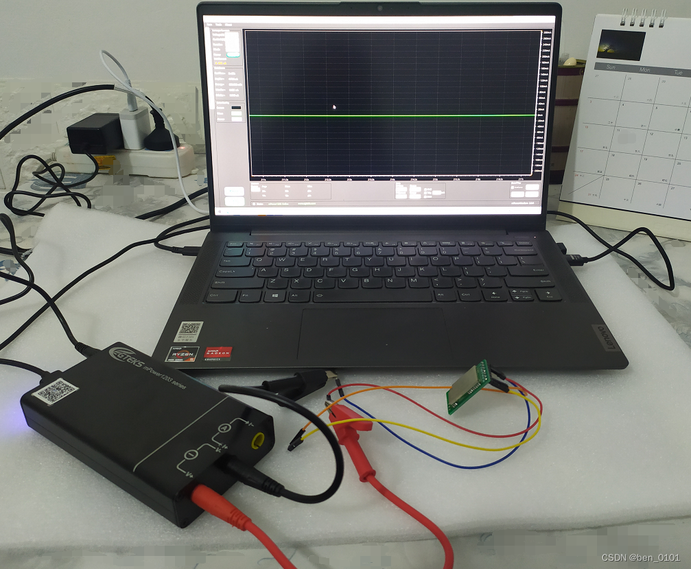 将mPower1203连接PC机,运行配套的Esight软件工具并建立连接。设置成电源功能Precision模式,采用供电+电流测试的方式。将mPower1203电源连接模块的正负供电极,并用杜邦线将模块的M0和M1管脚拉出,这样可以手动的配置M0和M1的高低电平。