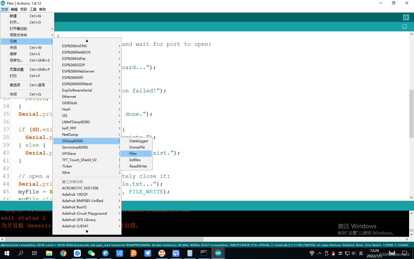 正常情况下,一旦你的arduino IDE里面安装了esp8266的硬件支持,那么就会自动安装上适配esp8266的SD卡库,所以我们是不需要安装库的。