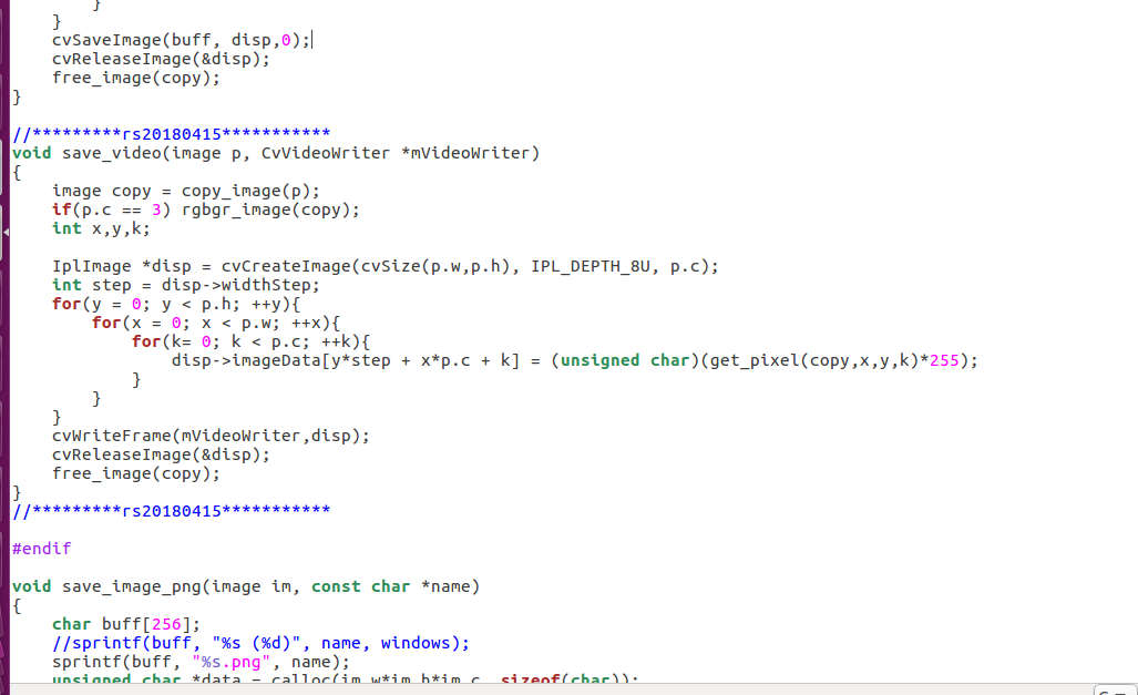 (1)首先在image.c文件中添加save_video函数的定义,代码及截图位置如下: