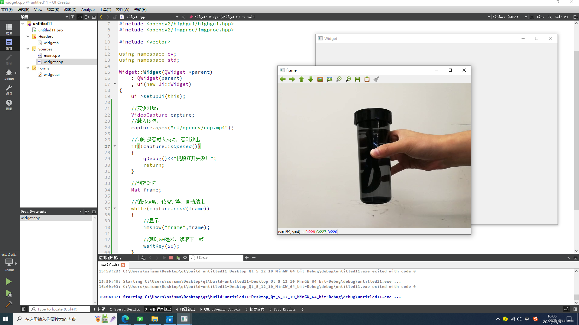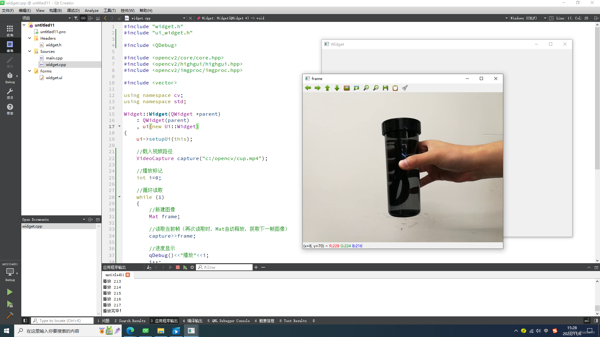 以上就是懦弱春天最近收集整理的关于Qt-OpenCV学习笔记--读取视频--VideoCapture()一、概述二、函数构造三、函数方法四、测试代码五、参考的全部内容,更多相关Qt-OpenCV学习笔记--读取视频--VideoCapture()一、概述二、函数构造三、函数方法四、测试代码五、参考内容请搜索靠谱客的其他文章。