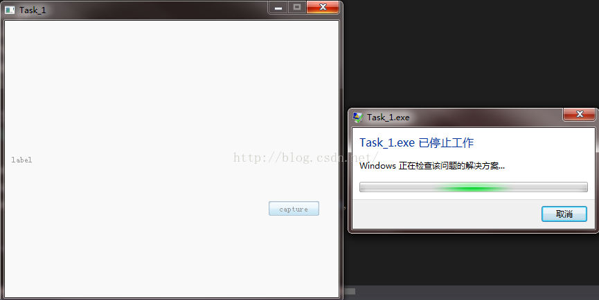 以下是我的task_1.cpp,程序可以正常运行,也能打开摄像头,但是每当点击“”capture“”按钮时,总是出现如下图所示的错误,不知道怎么回事,望大神相助啊