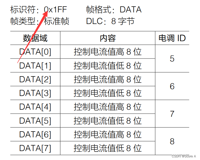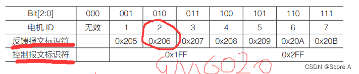 调节电机的ID号和标识符与程序上的一致(以官方例程),一定要看电调或者电机的说明书,以GM6020电机(电调电机一体的电机,即带有电调功能的电机)为例子,以下为GM6020电机的ID为5—7的协议