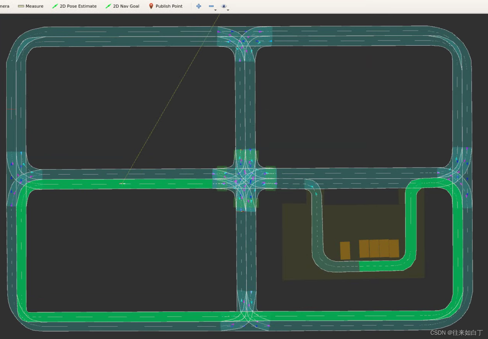通过rviz给定的起始lanelet和目标lanelet,利用routing函数实时生成可行路径并显示。在此基础上修改了lanelet话题发送、rviz显示颜色、更新频率等,以及重新写了规划路径的函数。并用 iter4的工具制造一个更简易的地图。