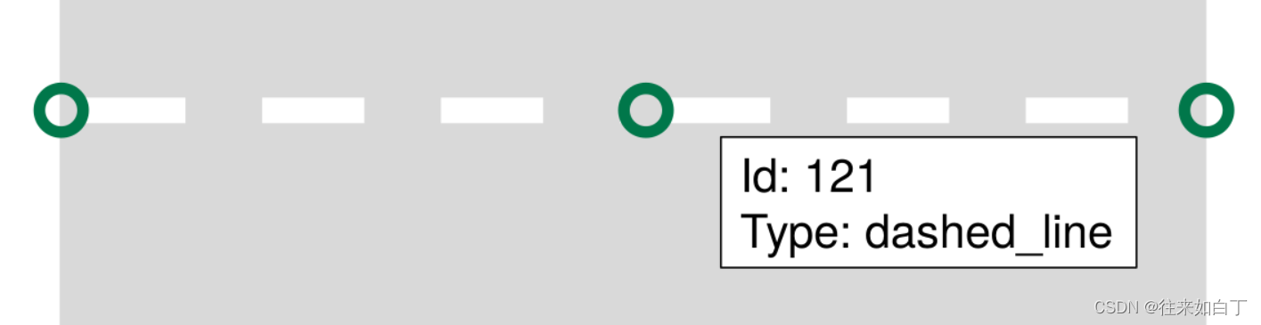 - subtype,用于进一步区分类型。例如low标记可通行的curbstone,dashed标记虚线道路标记