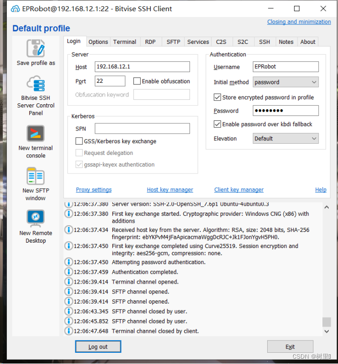 在开始前先对Bitvise SSH Client做一些准备工作,用Bitvise SSH Client连接上小车。大概是这个样子。