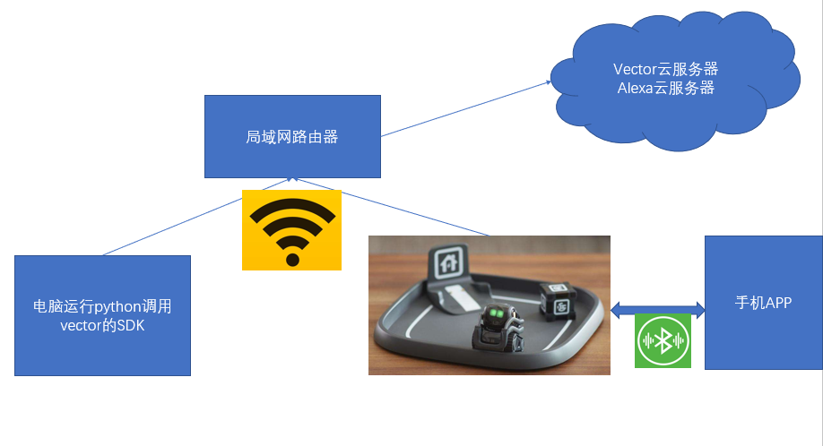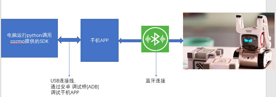 额,这这这......这是谁架构的,很明显,最初开发cozmo时,anki公司根本没想过要提供pythonSDK,所以这架构有点龊,每次要运行自己的python程序,首先得有个空闲不用的手机作为中间转发器。哎,实在麻烦。