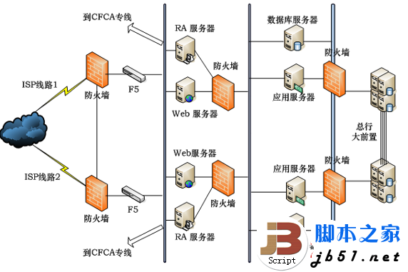 图1 网银系统拓扑图 (来源:developerWorks)关于拓扑结构,文章指出了几个关键点: