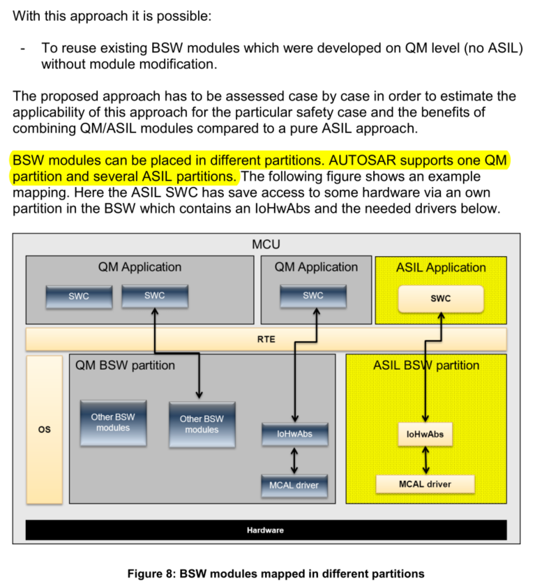 - BSW的软件模块可以放到几个不同的分区,AUTOSAR支持一个QM分区和多个ASIL分区。