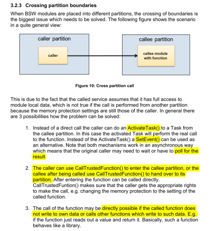 - 跨区访问的3种实现形式1: 通过激活另一个分区的一个task或者给另一个分区事件触发的task发送事件。