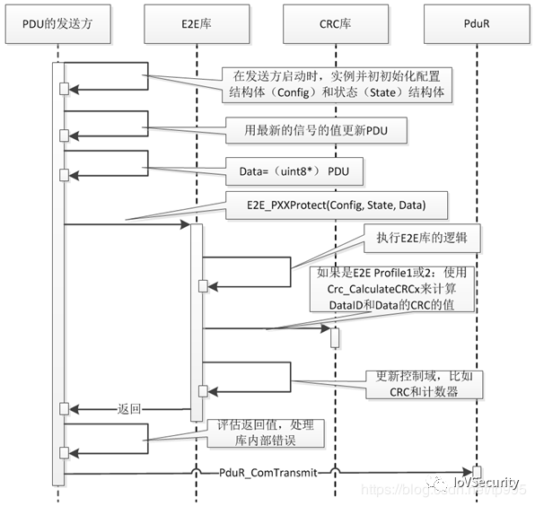 为了支持安全通信,AUTOSAR提供了三种机制,数据顺序控制、PDU复制和K/N的投票机制以及端到端的保护机制。其中数据顺序控制在COM中实现;PDU复制和N分之K(简称K/N)的投票机制涉及到COM和PduR模块;端到端的保护机制借助于端到端保护库(E2E库)来实现。