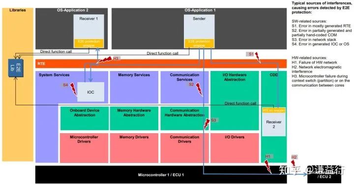 针对这些通讯失效,在AUTOSAR中就提出了E2E通信保护协议,即在系统运行过程中,动态地识别软硬件故障引起通信失效,保证ECU之间以及ECU内部不同核之间,不同SWC 之间数据的安全通信。