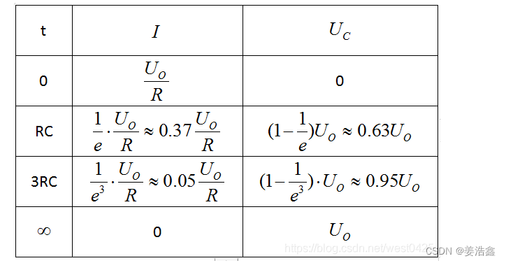 RC为时间常数,单位为秒。电容充电电流在0时刻最大,然后逐渐下降;电容电压逐渐增加,至无穷时刻增至Uo。3~5个RC时间段认为电容充满。