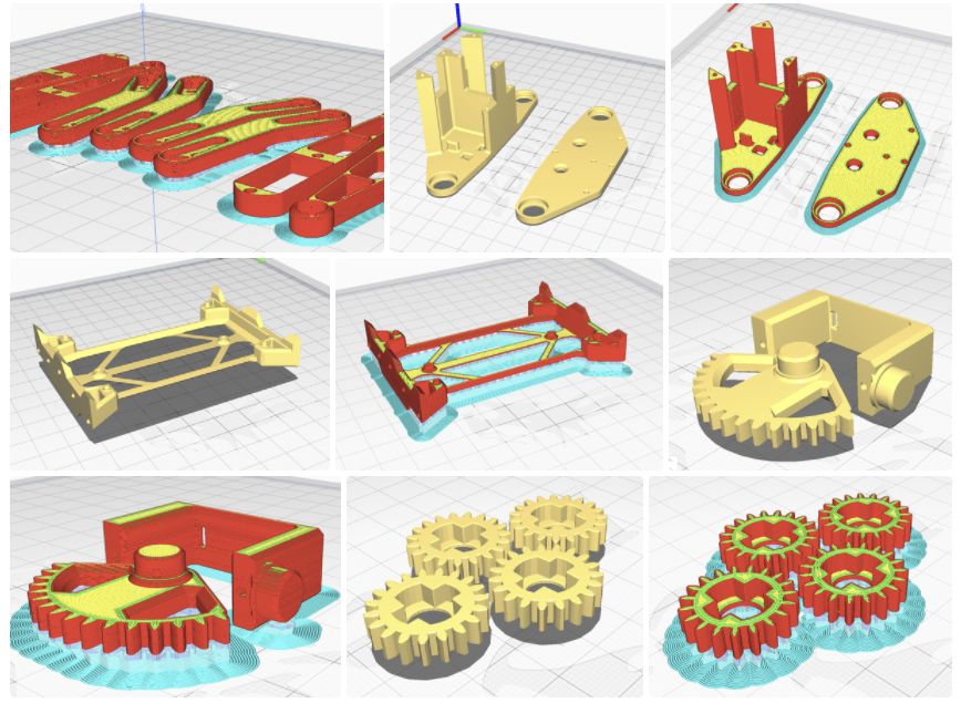 我的打印机在第一层厚度上有问题,也就是象脚。齿轮应该被尽可能完美地打印出来,所以我添加了非常小的垫片来避免这个问题,你会看到一些部件 "飞 "过表面,记得启用对它的支持。
