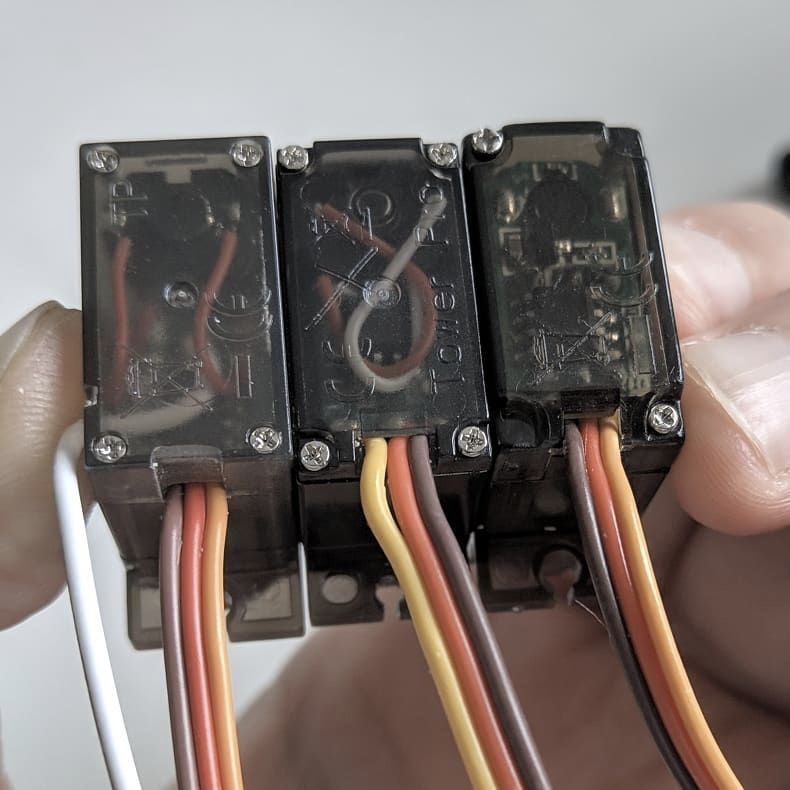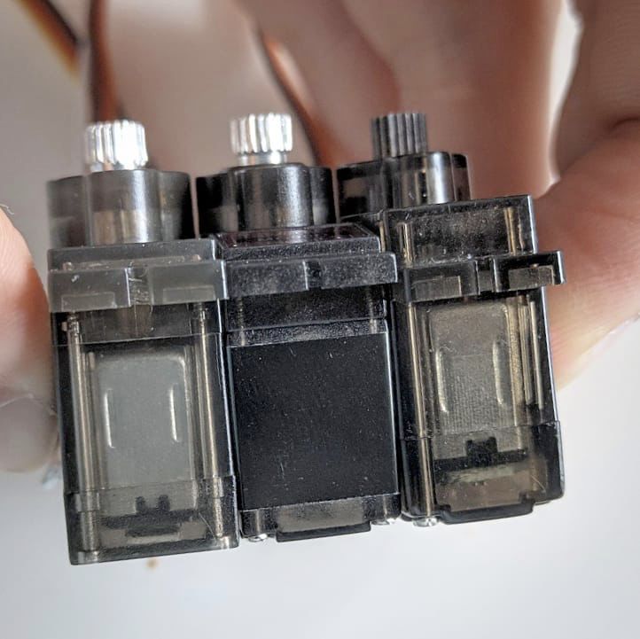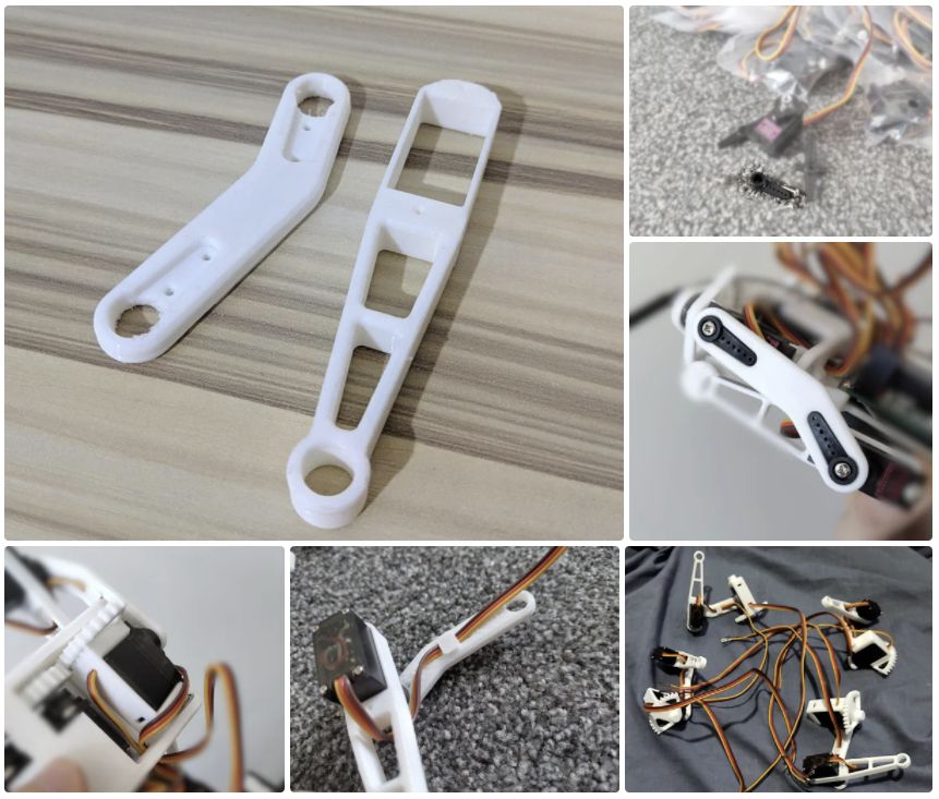- 12个TowerPro MG90D舵机(使用其他舵机可能比较麻烦,因为尺寸可能不同,可以看下三个不同的类似mg90的舵机的图片)
