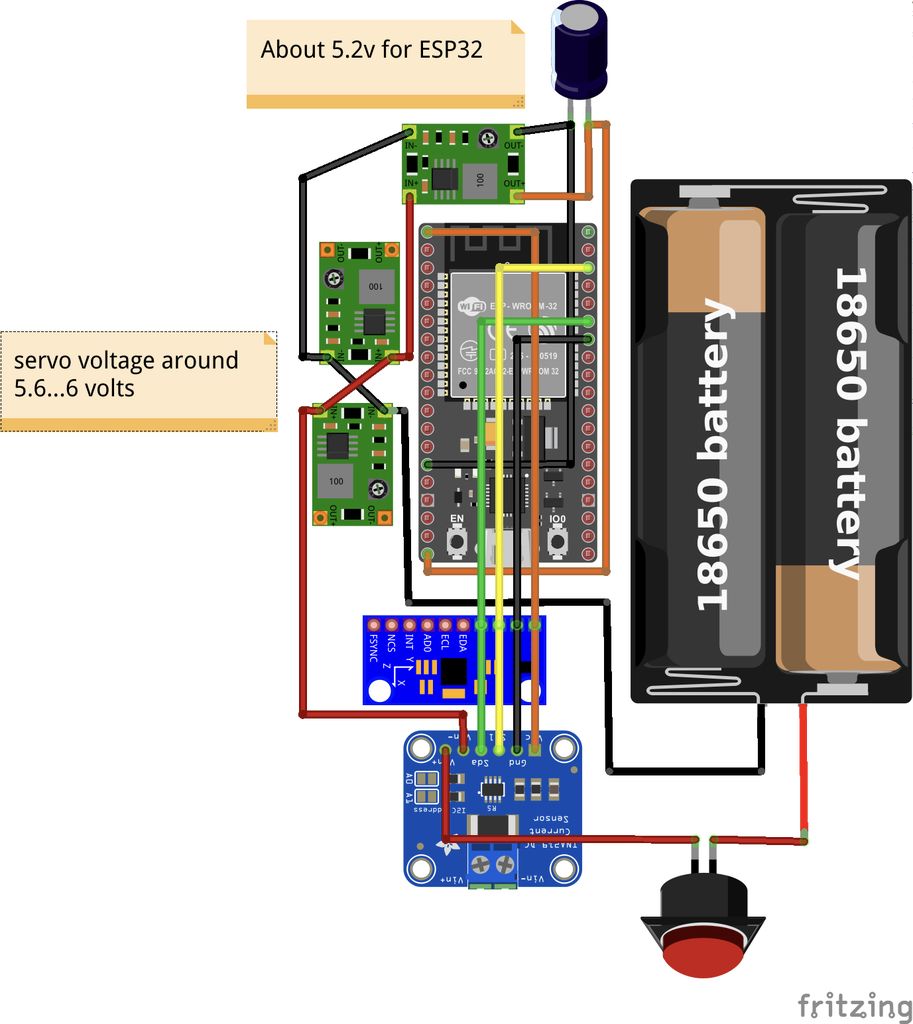 - 3个Mini360(DC-DC降压转换器降压模块)或类似产品,2个用于前/后腿(或更多),1个用于ESP32