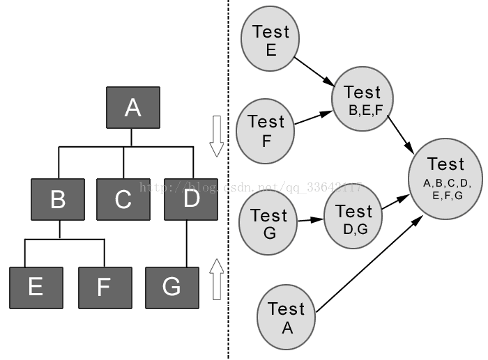 采用大棒集成方法,先是对每一个子模块进行测试(单元测试阶段),然后将所有模块一次性的全部集成起来进行集成测试 。