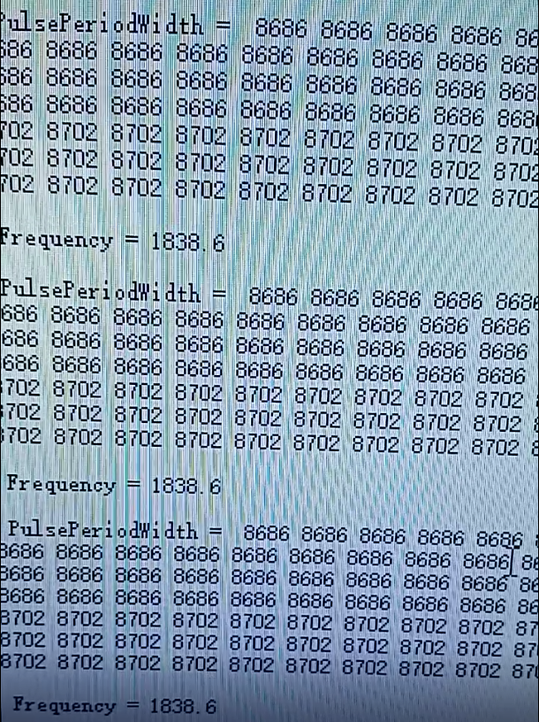 现在计数值不会乱跳了就好办了,频率值换算时取最大或最小的数,就能得到固定不变的值了,这里还有个问题没解决,就是这16个字的误差是怎么产生的,上面1838.6的频率,我实际是输入的1840,计算时取的最大数,得到的结果还是有误差,期待高人解答。。。。