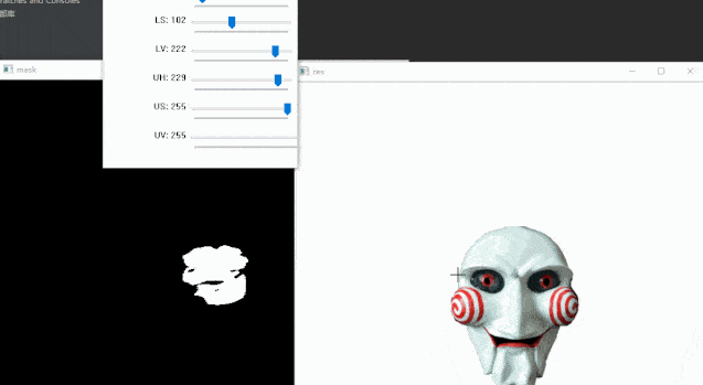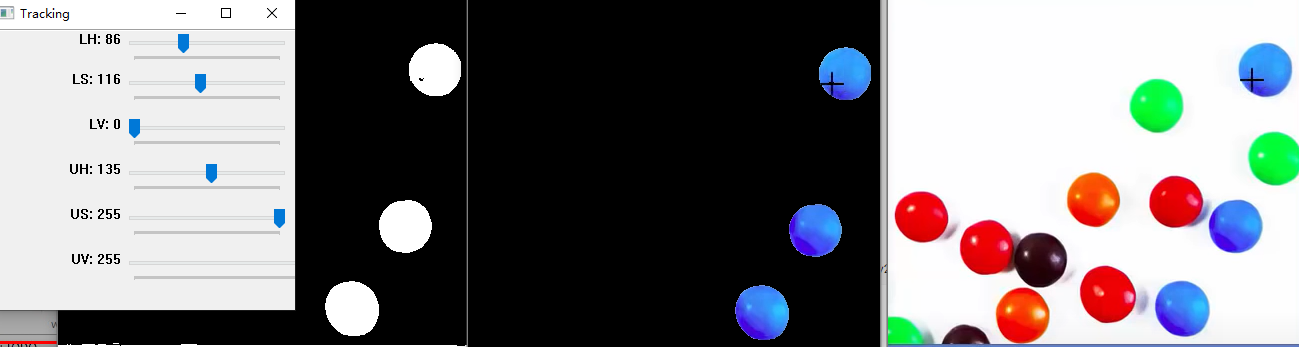 下面我们通过滑动条来改变阈值,达到识别不同颜色的效果