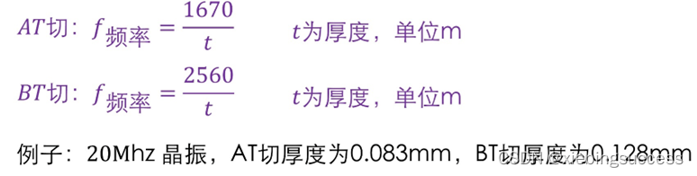 常见的切割类型有两种:AT和BT切。同种频率的晶振,AT切比BT切的温度系数要小,切片厚度要薄,但是Q值比BT切要低。下面是晶体频率同切片厚度、切割类型的关系: